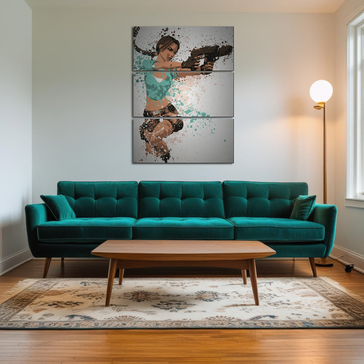 A good rule of thumb is that your artwork should be about 60–70% the width of the furniture below it (like a couch, bed, or console table). This helps the piece feel balanced and intentional in the space.